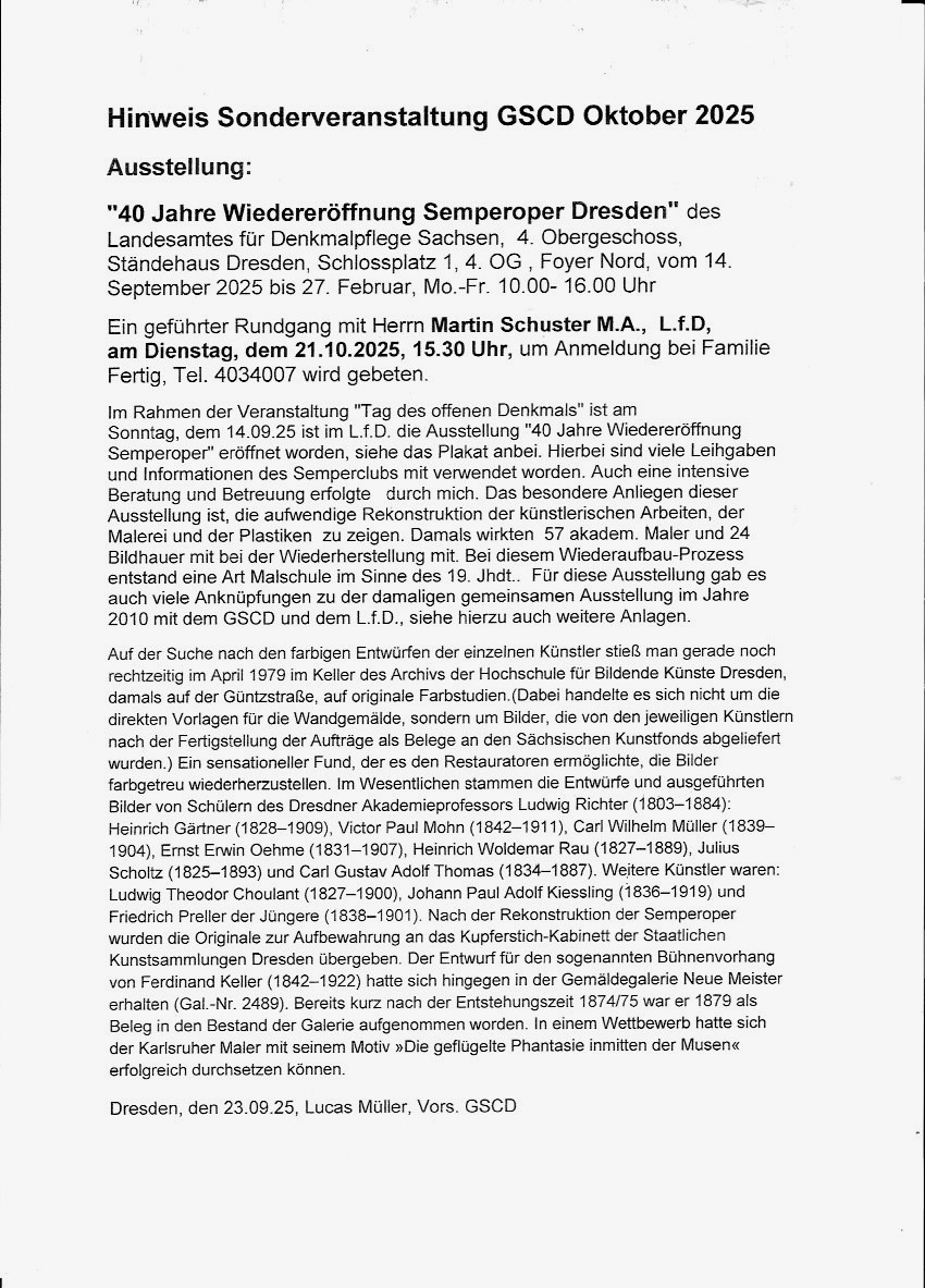 Vortrag Herr Gert Bürgel, "Memento Dresden