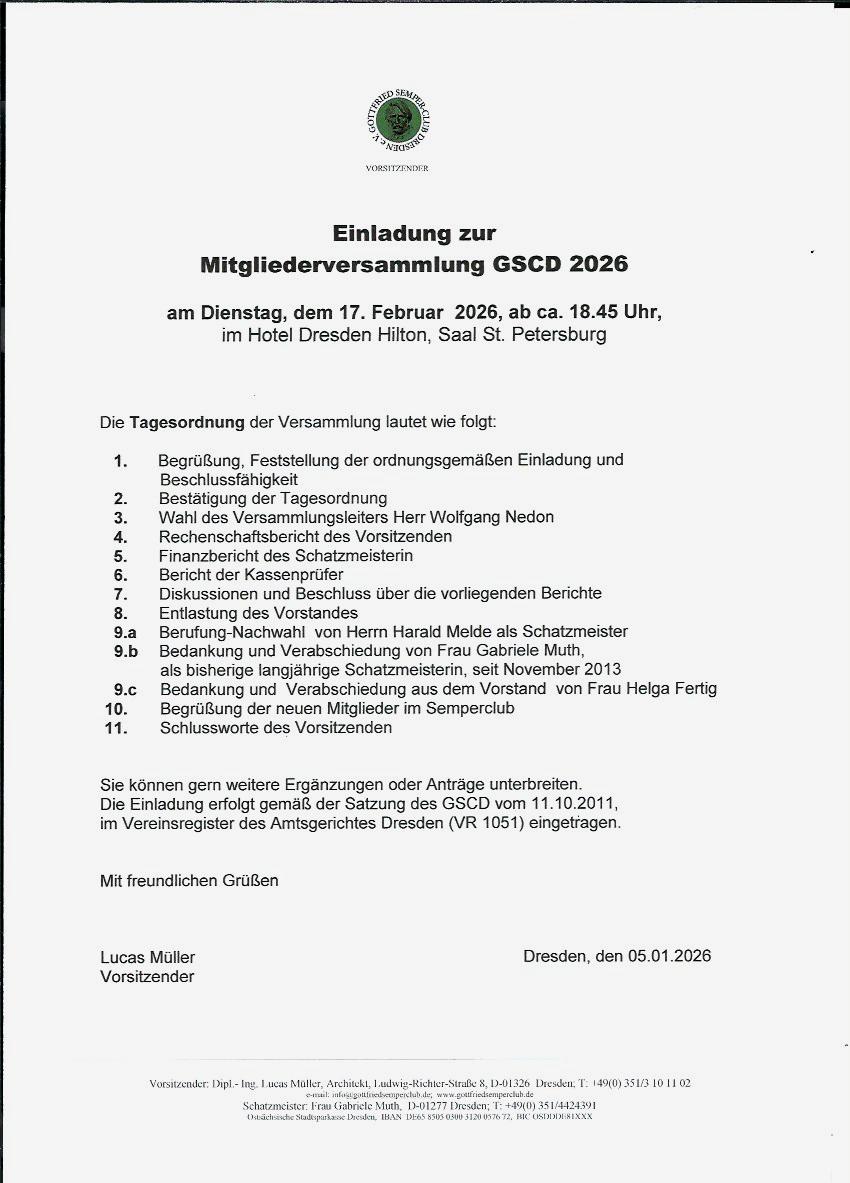 Liebe Mitglieder und Freunde des Gottfried-Semper-Clubs